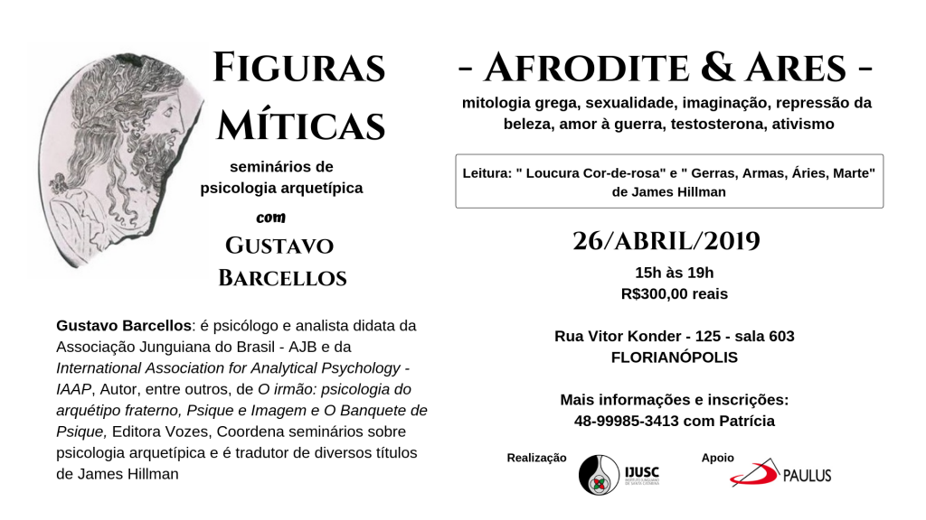 o analista junguiano Gustavo Barcelos para o Seminário sobre Figuras Míticas, Afrodite & Ares.