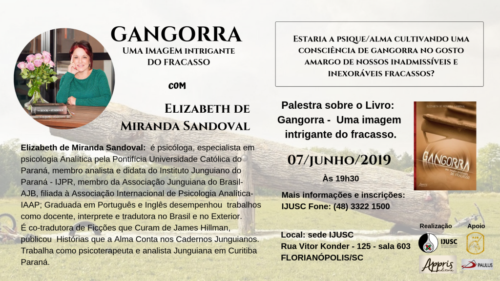 Temos o prazer em receber Elizabeth de Miranda Sandoval: psicóloga, especialista em psicologia Analítica pela Pontifícia Universidade Católica do Paraná, membro analista e didata do Instituto Junguiano do Paraná – IJPR, membro da Associação Junguiana do Brasil- AJB, filiada à Associação Internacional de Psicologia Analítica-IAAP; Graduada em Português e Inglês desempenhou trabalhos como docente, interprete e tradutora no Brasil e no Exterior. É co- tradutora de Ficções que Curam de James Hillman, publicou Histórias que a Alma Conta nos Cadernos Junguianos .Trabalha como psicoterapeuta e analista Junguiana em Curitiba Paraná.